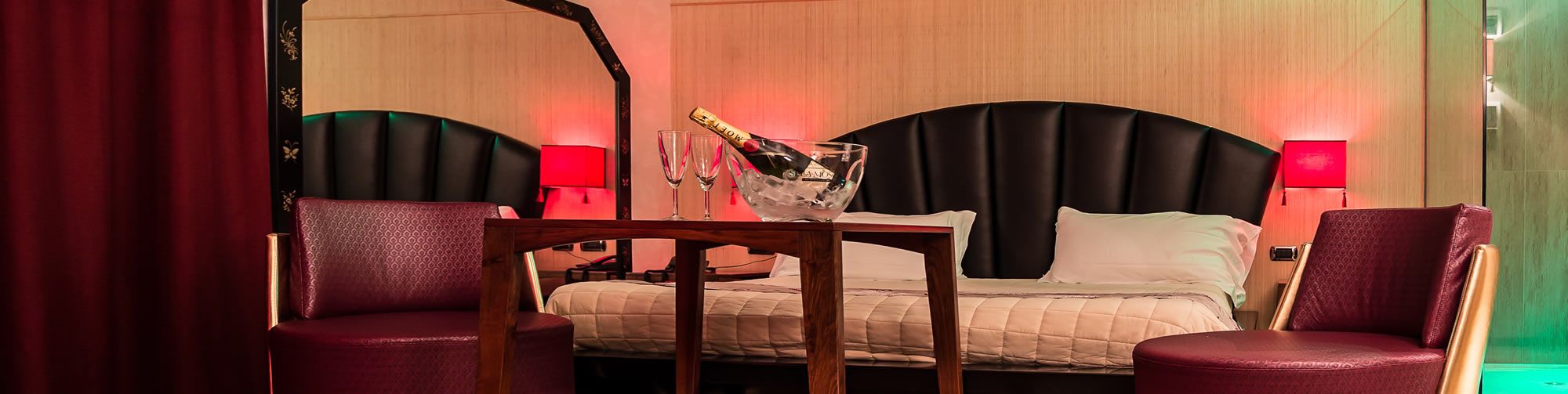 ** Pernottamento: tariffa con prima colazione inclusa, applicata a permanenze che superano le 5.00 del mattino, indipendentemente dall'orario di arrivo. Check-out entro le 12.00. Qualora si volesse prolungare il pernottamento oltre le ore 12.00 (orario di check-out) è previsto un supplemento che vi consentirà di soggiornare fino alle ore 18.00 (previa disponibilità) pari a: € 35,00 per Moulin Rouge, Paradiso Inferno, Yin e Yang, Kamasutra; € 45,00 per Mille e una notte, Luigi XIV, Alcova, Veneziana;€ 55,00 per Geisha, Palestra;€ 65,00 per Sagrestia, Templi, Giochi proibiti; €75,00 per Camera degli specchi, Grande fretello, Harem.